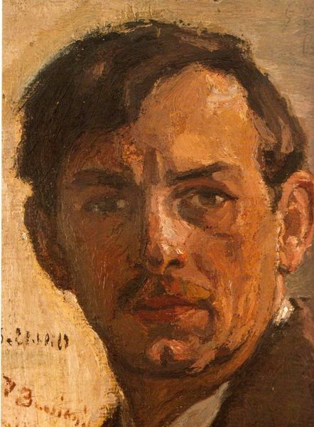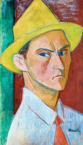 Editor: So, here we have Andre Derain's "Self Portrait with a Cap," painted in 1905. It's striking, isn't it? The colors are so intense, almost clashing. It's also thickly applied, giving it real texture. What do you see in terms of the artist’s working methods here? Curator: Immediately, I notice the materiality of the paint itself. The impasto is so prominent. Considering the Fauvist movement's focus on liberating color, look at how Derain uses the oil paint almost sculpturally, rejecting academic traditions. Do you think the choice of oil contributes to a particular social statement? Editor: I hadn't thought about the choice of oil paint making a statement, but maybe, compared to watercolors which were seen as amateur or feminine, it stakes a claim for the professional artist? Curator: Precisely! And consider the economic aspect. Oil paints, though increasingly available, still represented a certain investment. Derain isn't just depicting himself; he's displaying a certain level of access to materials, hinting at the labor and resources involved. The "cap," for instance, shifts from a simple head covering to an element of constructed persona tied to his social standing. Editor: That's fascinating! So the painting becomes less about inner emotion and more about the outward expression of Derain's status as a working artist through the display of labor and material choices. Curator: Absolutely. And think about who would consume this image. Was it for fellow artists, potential patrons, or himself? Each of these audiences dictates a different reading based on production and accessibility of this type of self representation. Editor: I see what you mean. I was initially focused on the emotions conveyed, but now I’m looking at the actual "stuff" of the painting. Thank you! Curator: My pleasure. It's about shifting from simply "seeing" to analyzing the how and why of its material construction and what that communicates.