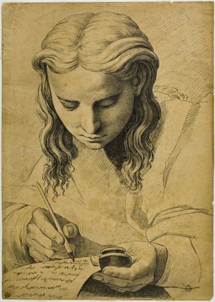 Ludovico Carracci made this drawing of a praying youth with red chalk, sometime around the turn of the 17th century. The beauty of a drawing like this is in the directness of the artist’s hand. You can see how the chalk is built up to create shadows and volume. Carracci's choice of red chalk lends a warmth and intimacy to the image, making the figure feel very present. The use of chalk allowed Carracci to achieve a range of tonal variations and subtle gradations, contributing to the overall sense of depth and realism. Red chalk was a common choice for drawings in this period, valued for its earthy tone and its ability to mimic the sanguine complexion of human skin. Think about the labor involved in creating this image. From the preparation of the chalk itself, perhaps by grinding natural pigments, to the careful layering of strokes on the paper. Drawings like this were often studies for larger paintings, but stand on their own as works of art. They remind us that the act of making is central to the creative process, and that even a simple material like chalk can be used to create something truly beautiful.