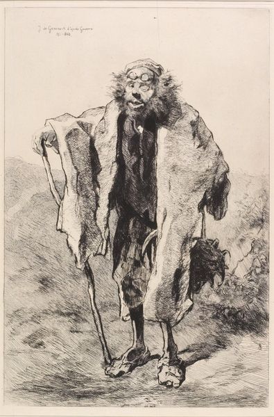 Robert Storm Petersen created this pen and ink drawing, "Blad til "Dagens flue", sometime in the first half of the 20th century. The stark black lines on the pale paper immediately draw our attention to the figure’s haunting presence. Petersen masterfully uses line to create a sense of disquiet. The subject’s exaggerated features and ragged clothing, rendered with frantic, almost scribbled lines, contrast sharply with the serene background. Note how the figure dominates the composition. The asymmetry of the drawing, with its off-center subject, generates an unsettling tension. This piece destabilizes conventional notions of beauty and order, prompting us to confront uncomfortable realities. The artist uses distortion not just to represent but to critique, challenging us to question what we see and how we interpret it. This subversion of expectations invites continuous re-evaluation.
