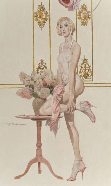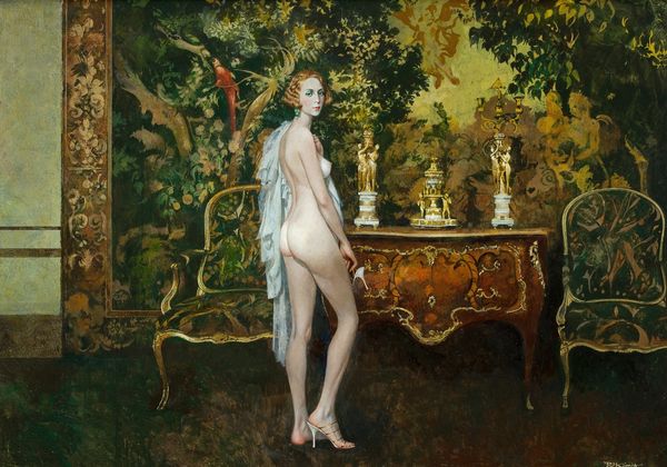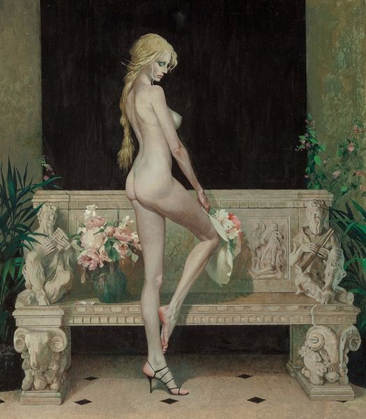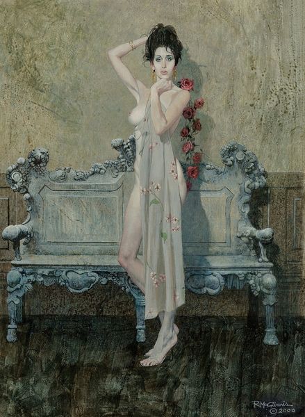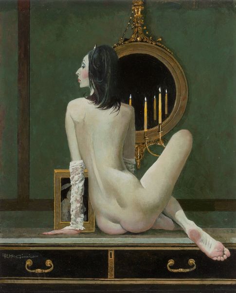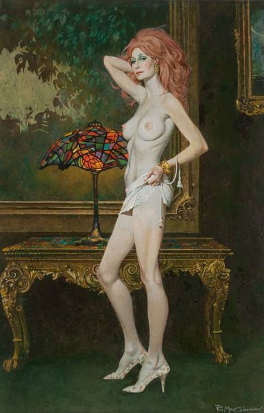 Robert McGinnis's "Jade" is an oil on canvas, demonstrating his mastery of the traditional medium for figurative work. McGinnis’s process is rooted in illustration, but he elevates it to a painterly level. The smooth blending and subtle gradations of tone speak to a deep understanding of light and form. Looking closely, we see the time-honored technique of layering paint to create luminosity in the flesh tones, a trick used by masters for centuries. Yet, unlike those historical paintings, here, McGinnis is deploying the skills to more populist ends. The artist was well-known for his paperback covers, a realm of commercial art far removed from the hallowed halls of high culture. McGinnis invites us to reconsider the social hierarchy, to question what we value in art, and to recognize the artistry inherent in all forms of creative expression. It is in that spirit that we can appreciate "Jade," and see how process and context give the work its unique charge.