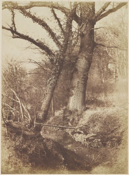 Hugh Owen created this 'Tree Study' using photography in the 19th century, capturing the essence of a tree trunk. The tree, with its steadfast presence, has been a symbol of life, growth, and connection to the earth across cultures and time. Consider the Tree of Life motif found in ancient mythologies, connecting the heavens, the earth, and the underworld. We see this motif echoed even in contemporary art, albeit often stripped of its explicit religious connotations, yet retaining a sense of primal connection. The presence of ivy, clinging to the tree, evokes ideas of resilience, endurance, and fidelity. The image taps into our collective subconscious, reminding us of the enduring power of nature and its ability to regenerate. These symbols are a testament to the cyclical nature of life and the interconnectedness of all things.
