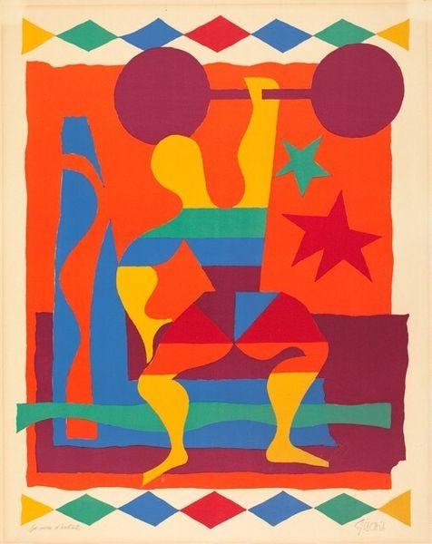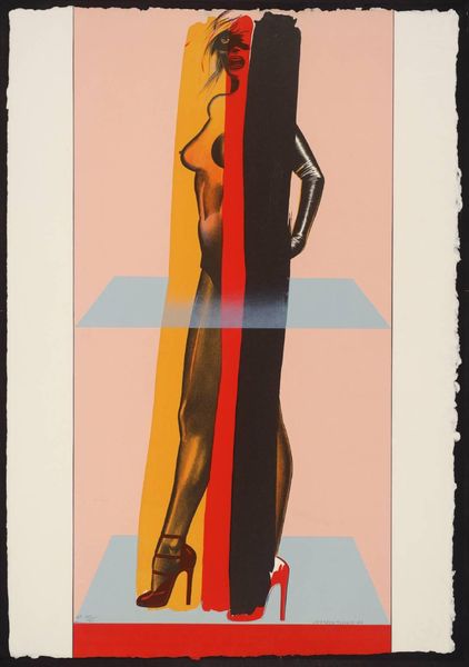 Editor: This drawing from 1967, called "Falling Man", is by Ernest Trova. The bright pink figure against the mustard-yellow background feels playful, almost whimsical. It’s definitely eye-catching! What do you make of it? Curator: "Falling Man," indeed! Trova's figures are always fascinating. I see a bit of existential humor, don't you think? He takes this really human concept—falling, losing control—and renders it in these stark, geometric shapes. The pop art sensibility clashes so wonderfully with the implied vulnerability of the figure. I almost feel like the falling man is in freefall! I imagine Trova smiling faintly, pondering the absurdity of existence as he sliced those shapes. How do the colours resonate with you? Editor: I can definitely see the existential angle. And freefall! The colors make it seem both serious and kind of ironic. Like, 'Oh no, I'm falling! How terribly...bright!' Curator: Precisely! Think about the era. The '60s were all about challenging conventions, right? So Trova takes this age-old theme of human struggle and throws a vibrant, modern spin on it. There’s something quite poignant about how he distills the human form into such simple elements, don't you think? Editor: It’s amazing how much emotion you can get from a few shapes. It really changes my perception of what art can communicate. Curator: That's the joy of Trova! Always surprising, always making you question. Art isn't about what you see; it's about what it makes you feel, after all. And sometimes, a little bit of joyful confusion is exactly what you need. Editor: True. It gives a new depth to seemingly simplistic pop art. Curator: Right, so, he encourages you to explore beyond the initial appearance, making you think about both freedom and constraint, vulnerability and performance. Pretty powerful stuff.