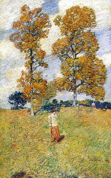 Paul Gauguin’s painting "Pont-Aven woman and child" is made with oil on canvas, using techniques that challenge the traditions of academic painting. Look closely, and you’ll see that Gauguin has opted for a deliberate flatness, simplifying forms and using colour to define shapes rather than create illusions of depth. The visible brushstrokes, applied in short, rhythmic dashes, speak to a direct engagement with the material. It's as if Gauguin is making no attempt to hide the labour involved in creating the artwork. In his choice of subject, depicting everyday life in rural Brittany, Gauguin turns away from the industrialized world and romanticizes a simpler, more 'authentic' existence. However, the very act of painting and selling such scenes implicates him in the art market, a system deeply tied to capitalist structures. Gauguin is walking a tightrope, celebrating the handmade while navigating the complexities of an increasingly commercialized world. It is this tension that gives the painting its enduring power.