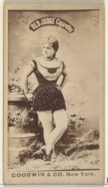 This card, created by Allen & Ginter for Virginia Brights Cigarettes, features the actress Pauline Markham in a pose that is both assertive and alluring. Markham's crossed arms, with a cigarette held between her fingers, evoke a sense of self-possession. The pose is reminiscent of classical contrapposto, but it's charged with a modern audacity. This gesture of crossing arms can be traced back to ancient sculptures, where it often signified contemplation or defiance. Yet, here, the cigarette introduces a new element. The act of smoking, historically loaded with both rebellion and sophistication, adds to the complex emotional landscape. It is a symbol of transformation, of something smoldering beneath the surface, appealing to our subconscious desires. A gesture that engages viewers on a deep, visceral level, stirring feelings of longing, curiosity, and perhaps even a hint of danger. It is an image that lingers in the mind, a palimpsest of cultural meanings, constantly reshaped by the passage of time.