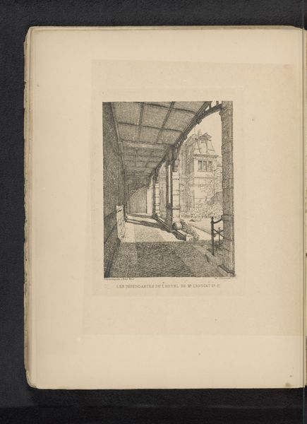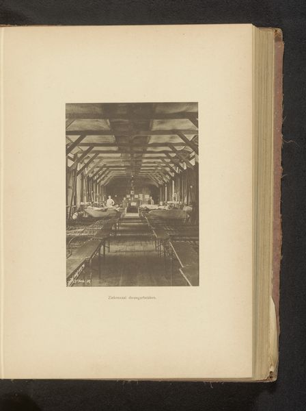 Curator: Let's turn our attention to this intriguing gelatin silver print by Ferdinand Fussen. It's titled "Zaal van de Exposition Nationale van 1880 in Brussel, België," so roughly translated, "Hall of the National Exposition of 1880 in Brussels, Belgium". Editor: It's almost melancholic, isn’t it? All those receding arches and classical columns fading into a kind of indistinct, industrial haze. The solitary chair in the foreground adds to the feeling of absence. Curator: I find that perspective captivating. Fussen directs our gaze through a space dedicated to “Enseignement” – Education, as clearly inscribed on the archway above. It invites reflection on the era's ambitions for progress and national identity. Editor: Absolutely. Look at how that sign dominates the composition, declaring education as almost structural to this architectural marvel. I wonder about the labor involved in creating this exhibition space— the ironwork for the arches, the construction of the columns, the social hierarchy behind this endeavor of national self-representation. Curator: Precisely. The rows of what appear to be paintings or displays lining the hall also function as signifiers. We understand this photo also represented what the Belgian state aimed to represent and to show itself. In its cultural memory, this fair marked a milestone in the emergence of modern Belgium. Editor: And yet, what remains now are just shades and echoes of those long lost exhibits, those nameless workers who actually assembled this space and vision, and even that visitor who once sat down. This photographic print is more than just a document; it's also a relic from an earlier epoch of Belgian cultural ambition. Curator: Indeed, the interplay of architectural grandeur, photography, and aspirations offers us a complex glimpse into late 19th-century society. A world, which seemed bright but at closer inspection was more nuanced than meets the eye. Editor: A thought-provoking examination.