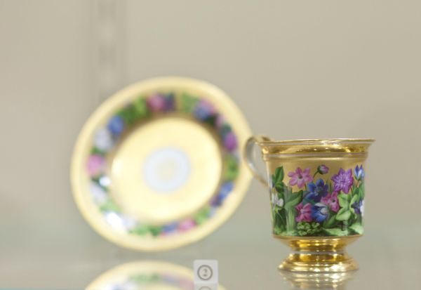 This cup and saucer, by an anonymous maker, were made from delicate porcelain. Porcelain is created by firing refined clay at high temperatures. Porcelain's smooth, white surface takes color beautifully, as we can see in the gilded surface and painted floral motifs. It was a prized material in the 18th and 19th centuries, as it was associated with luxury, trade and global commerce. The techniques and the material are important, but so is the context: porcelain tableware emerged as part of a culture of conspicuous consumption. The rise of the middle class meant more people wanted access to luxury goods like these, and factories churned out vast quantities to meet the demand. So, while this cup and saucer might seem precious and unique, it's also a product of its time, enmeshed in broader social issues related to labor, trade, and the democratization of luxury. Recognizing the artistry and the industrial forces at play allows us to fully appreciate its cultural significance.