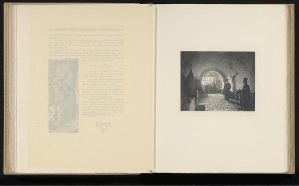 This is a black and white image, "Interieur van een zaal met harnassen en geweien aan de muur in Penshurst Place" by Stephen Thompson. The composition is dominated by the interior of a room, where the convergence of lines leads the eye towards the back of the hall, creating depth. The high contrast between light and shadow adds a dramatic quality, emphasizing the textures of the stone walls and the polished surfaces of the armour. The arrangement of armour and weaponry on the walls isn't random. The structure suggests a deliberate construction of identity and power. This interior speaks to semiotic and philosophical concerns, reflecting the artist's exploration of the construction of meaning through visual representation. Note how the meticulous detailing of the objects, combined with the architectural structure, challenges fixed notions. It emphasizes that art is not merely representational, but a dynamic interplay of form, content, and context. The architecture, objects, and arrangement function as cultural signifiers, offering insights into historical narratives.