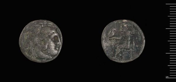 Editor: We're looking at a bronze coin of Demetrios II, minted in Antioch. It has a worn texture. What enduring symbols or memories do you see embedded within it? Curator: Note the king's portrait. It's not just a face; it represents power, lineage, and a whole dynasty's ambitions. Consider how rulers used coinage to project their image and legitimize their reign. What does it tell us about the ruler's self-image? Editor: So, the coin is more than just currency; it's a propaganda tool? Curator: Precisely! And the condition of the coin, worn smooth by countless hands, speaks to the passage of time and the enduring presence of the Seleucid dynasty. This tangible link connects us to a distant past. Editor: I hadn't considered the wear and tear as a symbol in itself. Thanks! Curator: My pleasure. Each artifact whispers stories if we listen closely.