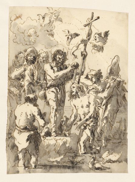 Andreas Massinger created this print of the Crucifixion around the turn of the 19th century. The image depicts Christ on the cross between the two thieves. Below, we see the reactions of various onlookers. Crucifixion scenes were common in European art for centuries, often commissioned by the church or wealthy patrons. Massinger's print, however, invites us to consider the changing role of religious imagery during the Enlightenment. As traditional institutions came under scrutiny, artists began to question established norms. In the Netherlands, where Massinger worked, there was a strong movement towards more personal and introspective forms of religious expression. To fully understand Massinger's work, we might look at religious pamphlets and sermons from the time to better understand the variety of views about the public role of the church. By studying the social and intellectual context, we can appreciate how artists like Massinger grappled with faith and doubt during a period of profound social change.