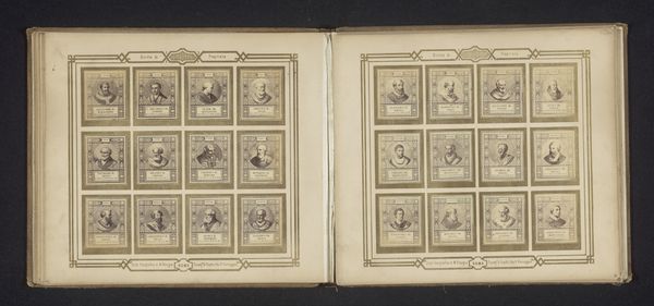 This is M. Petagna's photographic reproduction presenting twelve portraits of popes, bound within an album, its date unspecified. The composition immediately strikes one as rigorously structured. Each portrait is framed uniformly, arranged in a grid, which speaks to a desire for order and classification. The images themselves, rendered in monochrome, invite us to consider the semiotics of representation and power. The rigid arrangement and consistent framing reduce the individual popes to a series of types. This flattening effect challenges traditional notions of portraiture as celebrating individual uniqueness, and instead emphasizes the structural role each figure occupies within a larger institution. The act of photographic reproduction further complicates the idea of authenticity. It removes the artistic 'hand' that creates a portrait, implying mechanical objectivity. The grid-like presentation underscores this sense of detachment, inviting a structural analysis of the papacy as a system of power. Note how the lack of tonal variation invites a conceptual reading of the image. This is not simply a display of individual likenesses but a comment on the papacy's enduring structure.