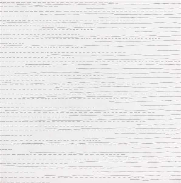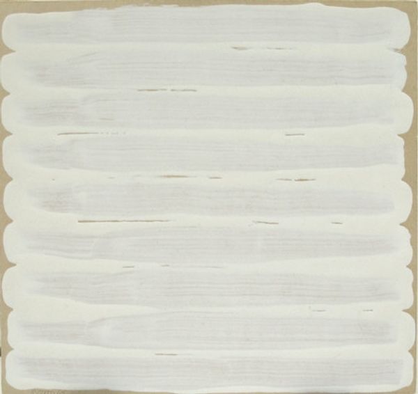 Editor: Here we have Susan Schwalb's "Strata #277," a square work featuring delicate horizontal lines. It's so subtle, almost ethereal. What can you tell me about the materials and process? Curator: Notice how Schwalb uses silverpoint, a drawing technique reliant on the slow accumulation of marks. The labor involved transforms the mundane into something precious, challenging our ideas about value and production. Editor: So, the act of making is just as important as the final image? Curator: Exactly. It’s about elevating craft through meticulous process, prompting us to reconsider what constitutes "high art" in our consumer culture. Editor: That's a fascinating perspective, I had not thought about it that way. Curator: Indeed, understanding the labor unveils the art’s true value.