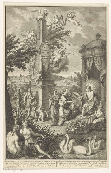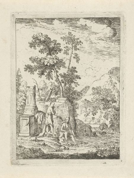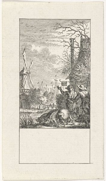 "Jason bij het Gulden Vlies," or "Jason and the Golden Fleece," was created by Abraham Dircksz Santvoort in the 17th century, a period of Dutch history marked by its burgeoning global trade and colonial ambitions. This print depicts a scene derived from Greek mythology, specifically the quest for the Golden Fleece. Jason, the hero, is shown confronting the dragon guarding the Fleece, set against a backdrop of a dense, European forest. This classical narrative, steeped in themes of heroism and conquest, mirrors the socio-political climate of the Dutch Republic, which was then expanding its influence and control over international trade routes. However, the image presents a very specific and gendered notion of power. Jason is presented as the active agent, tasked with subduing the dragon, a symbol often associated with untamed, feminine power. The Golden Fleece, the object of Jason's quest, represents wealth and power, obtained through conquest. It reflects the complex interplay between gender, power, and colonial ambition that shaped the Dutch Republic’s identity during this era.