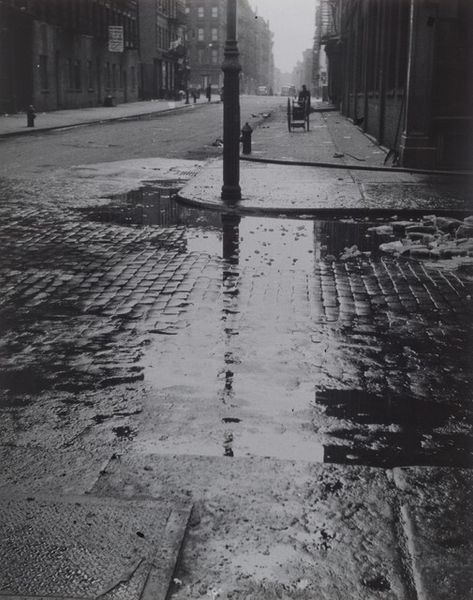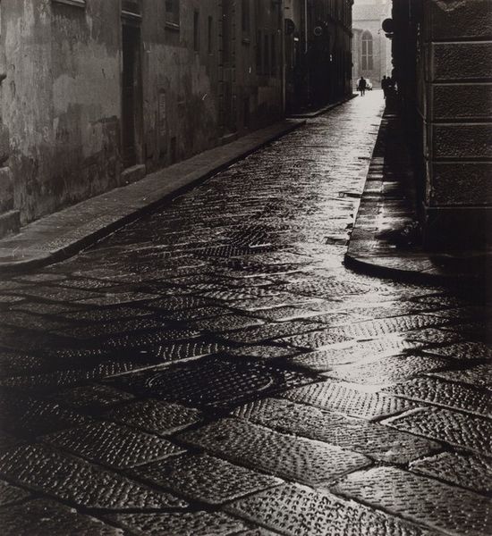 Bill Brandt made this photograph, Bloomsbury, using gelatin silver. It’s a dance of light and shadow, isn’t it? Look at how Brandt uses this grayscale palette to sculpt the scene, emphasizing texture, like the wet street gleaming softly under the dim light. Notice the way the light puddles along the curb, creating a sinuous, reflective line that draws your eye into the distance. The surface is smooth, almost velvety, except where the texture of the stone asserts itself, grounding the image in a palpable reality. The streetlamp anchors the composition, its long shadow stretching across the cobblestones. This one element structures the entire picture, creating a kind of visual rhythm. It reminds me of the haunting cityscapes of Giorgio de Chirico. Both artists create a sense of anticipation, a quiet unease that lingers in the stillness. Brandt, like de Chirico, finds beauty in the everyday, transforming the mundane into something magical and slightly surreal.