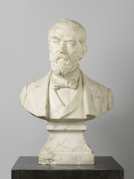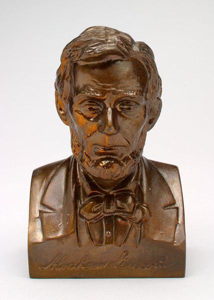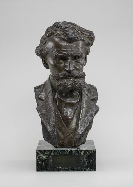 Curator: Well, hello there! Doesn't this piece just radiate...ambition? It’s a bronze sculpture, created by Bryant Baker in 1925, titled “William A. Clark.” Something about it suggests power and prosperity, don't you think? Editor: Immediately, I'm struck by a certain...unease. Clark was a complex figure, heavily involved in mining and politics, marked by accusations of corruption. Seeing him rendered in bronze like this—imposing, solid—raises questions about how we memorialize individuals whose legacies are deeply problematic. Curator: Ah, you've hit on something vital! Baker, though, I think he aimed for classic portraiture. Look at the detail in the beard, the way the light catches the lapel...there’s a timeless quality. He wasn't just immortalizing a man but a type—the self-made industrialist, perhaps. Editor: Absolutely. It’s about myth-making. The sculpted bust form, inherited from classical antiquity, almost inevitably idealizes its subject. The textures in his jacket suggest the luxury that supported Clark's endeavors. He's not just William Clark, he’s *representing* a whole social order, one built on exploited labor. Curator: Hmm, is it glorifying though, or documenting? Baker doesn’t shy away from Clark's… intense gaze. There’s a hardness there that hints at ruthlessness as much as resolve. Editor: True, the face isn't entirely flattering. Yet, the act of creating the bust monumentalizes and grants status to a system that perpetuates social disparities and marginalizes entire groups of people. So, the artwork must engage with its larger context. The green tint in the bronze suggests patina or possible aging of the bronze through chemical reactions. Curator: You always bring it back to the broader view, don’t you? Me? I simply feel a flicker of…melancholy. Bronze ages so wonderfully. What secrets will it whisper in a hundred years? Will they remember the controversies? Editor: Exactly. Let’s hope it sparks the right conversations, even in a century's time, conversations that expose structures that permit some to acquire great riches by disadvantaging others. Curator: A powerful thought to take away from a static bust. Editor: Indeed, and thank you, this was certainly an evocative point for exploration.