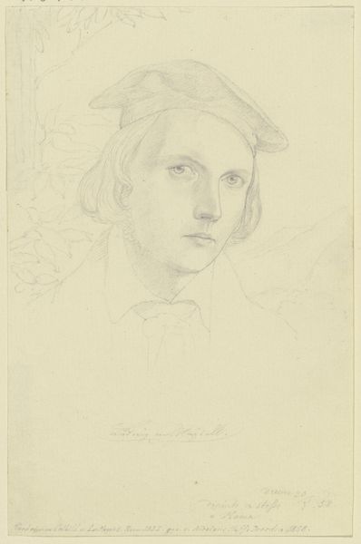 Eugen Eduard Schäffer's "Bildnis eines Mannes mit Mütze" at the Städel Museum presents a delicate study in pencil, where the artist explores the nuances of form and structure through a minimalist approach. The composition centers on the subject's head and shoulders, rendered with fine, almost hesitant lines. Schäffer's use of line is particularly striking; it's tentative, creating a sense of depth and volume without resorting to heavy shading. The eyes, though lightly sketched, draw the viewer in, suggesting a contemplative mood. The hat, with its intricate folds and soft contours, adds a layer of complexity to the otherwise sparse composition. The extensive use of negative space around the figure invites reflection on what is not depicted, challenging our perception and underscoring the power of suggestion in portraiture. The structural simplicity of the drawing underscores the artist's interest in capturing the essence of his subject through fundamental elements.