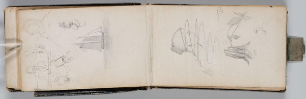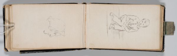 Curator: Welcome! We're looking at Sanford Robinson Gifford's "Man in Costume; Man in Tall Hat," a small graphite sketch from the artist's notebook. Editor: It feels light and fleeting, almost like catching a glimpse of a dream. The sketchbook format makes me wonder about accessibility—who was this art made for, really? Curator: That's insightful. Gifford, known for his Hudson River School landscapes, was meticulous with his materials. This sketch, part of his private study, highlights the labor and practice involved in even the most celebrated artwork. Editor: Absolutely. And thinking about "costume" – what identities is Gifford exploring here, and what socio-political roles do these figures play? Are they authority figures, theatrical performers, or simply observations of daily life? Curator: Those are important questions. The act of sketching itself could be seen as an act of documenting and potentially subverting existing power structures. The small scale only intensifies the intimacy. Editor: It reminds us that art-making is about observing, recording, and engaging with the world around us—a world steeped in social dynamics. Curator: Indeed. Ultimately, this unassuming sketch offers a unique perspective on Gifford’s artistic process. Editor: A small window into larger conversations about art, identity, and the world.