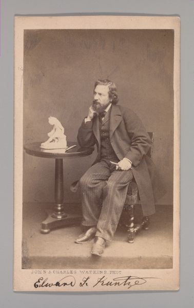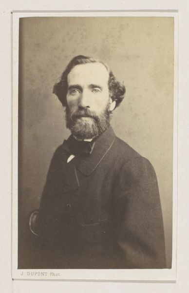 This is a portrait of the painter Henri Jacques Bource by Joseph Dupont. In this photographic print we can see an example of the many portraits which circulated in the 19th century. Bource is depicted in a classic bourgeois style. His groomed appearance and the formal attire serve to construct a particular kind of identity, one that is rooted in class and profession. Interestingly, Bource was known for his paintings of fishermen and other members of the working class. Dupont’s portrait, while seemingly straightforward, opens up a complex dialogue about representation and the role of the artist in society. The very act of portraying Bource in a manner so detached from his subject matter seems to suggest that the realities of the working class were better suited for the canvas than the camera lens. In this way, the portrait serves not just as an image of a man, but as a commentary on the artistic and social values of the time.