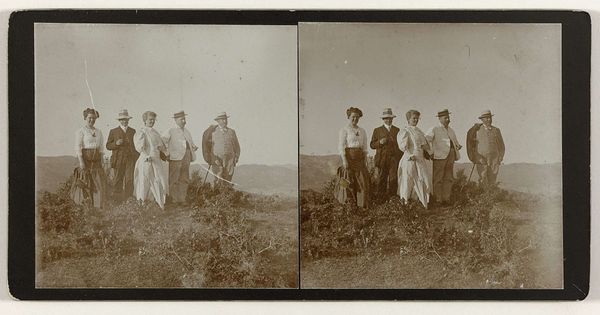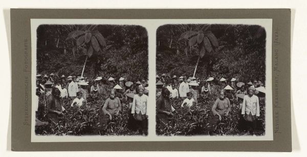 Editor: This gelatin silver print, "Gezelschap bij de rivier op het terrein van plantage Accaribo" by Theodoor Brouwers from 1931, feels both posed and a little awkward. They’re standing on what looks like a makeshift platform near the water, but what strikes me is how the materiality of this photographic print evokes its social context. What can you tell me about how the process shapes the message? Curator: It’s interesting that you immediately picked up on the "makeshift" nature of the platform. From a materialist perspective, the construction, or rather, the *making* of this image becomes central. Look closely. What’s supporting that platform? Is it built with precision, or is it more practical and functional? Who likely constructed this platform and with what resources readily at hand? Editor: It definitely looks practical. Maybe just lashed together logs? It feels less about aesthetics and more about making do with what they had on hand in that environment. Curator: Exactly. Now, consider the gelatin silver print itself. This wasn't a luxury process at this time, but it was a means of wider image dissemination compared to older processes. The materiality of the photograph reflects accessibility but also the labor involved in photography - the photographer, the developers, the printers. This contrasts with the "high art" we might see celebrated elsewhere. What assumptions can you question here regarding "high art" versus documentation, labor, and material availability? Editor: I guess I hadn't really considered the accessibility aspect of photography, even back then. And I definitely see what you mean about the labour involved and how it sort of flattens that traditional high art versus low art division. It really makes me consider the means of production itself. Curator: Precisely! Thinking about art in terms of material processes and its relation to social production offers a fresh lens for interpretation. It reframes the conversation to include the everyday, the overlooked labor, and the economic conditions shaping art. Editor: I will never look at an old photograph the same way again. Curator: Good, now consider its place within society!