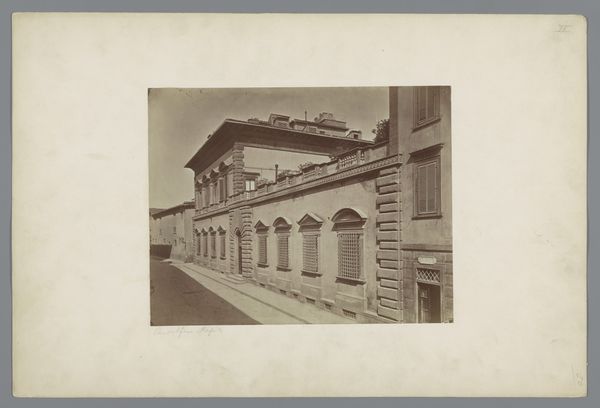 Editor: We are looking at *Convent in La Cruz* by François Aubert, created in 1867, a daguerreotype photograph housed at The Met. It has an elegant architectural style, but its aged and softened appearance gives me an eerie, nostalgic vibe. How do you interpret this photograph? Curator: The appeal lies, firstly, in its geometric organization. Observe the strong diagonal axis cutting across the picture plane, established by the building’s receding facade. Notice how this compositional strategy effectively guides the viewer’s eye, creating depth within the two-dimensional space. Further, we must acknowledge how the tonal gradations and nuanced deployment of light activate formal considerations such as volume and surface, resulting in the photograph's representational quality. Does the effect seem intentional to you? Editor: Absolutely, there's a certain sharpness in its lines juxtaposed with a faded dreamlike state. Do you think the artist wanted the architecture to convey a theme or symbolic element? Curator: It may serve our reading to consider that in semiotics, buildings often function as signifiers of power, permanence, and institutional order. We can think of Aubert emphasizing the visual characteristics of this architectural form – the texture, geometry, and structural harmony – to invoke contemplation upon our comprehension of architecture within the cultural context it stands. What new thoughts emerge when you see it through that lens? Editor: It highlights the historical moment captured; its cultural impact goes beyond the purely visual or representational qualities. It's almost like looking into a visual artifact of society. Thanks for your expertise! Curator: Indeed, examining it has offered insights into formal elements and expanded interpretive potential through understanding historical symbols.