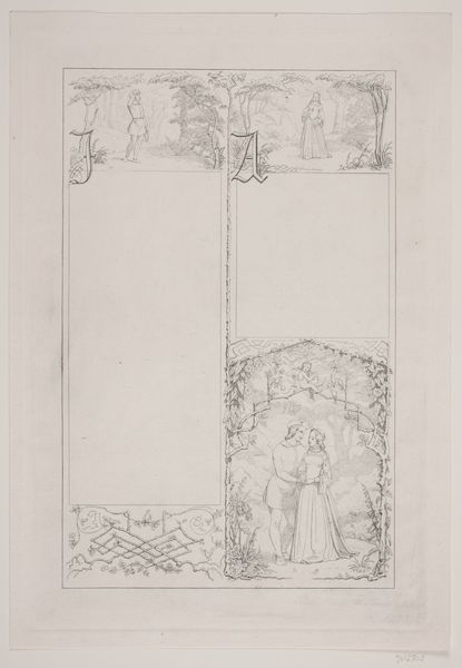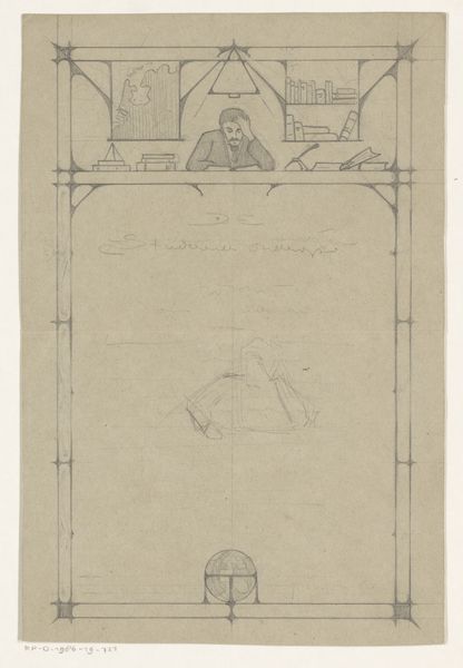Editor: This is "Standing Woman Caring for her Plants," a pencil drawing on paper by Ferdinand Roybet, dating somewhere between 1850 and 1920. The composition feels so open and airy because the pencilwork is sparse, yet the grid provides a clear underlying structure. What strikes you about its visual arrangement? Curator: The visible grid certainly presents an intriguing formal element. Notice how the artist uses this structure, almost like scaffolding, to create spatial relationships. The figure of the woman, the objects, and the implied landscape behind her are all mediated through this geometric framework. Editor: Yes, the grid really jumps out. It seems so deliberate, not something hidden or erased. Is it typical to see the underlying structure so clearly in a finished drawing? Curator: It's unusual but provides a unique point of access. It prompts questions about the creative process. Does the visible structure disrupt or enhance our reading of the drawing's subject? Consider the relationships the artist creates, as much linear as figurative. What impact does this have on your reading? Editor: It’s like you’re seeing both the finished image and the artist’s working method all at once. It does kind of make you question whether the image is ‘finished’ in the conventional sense of the word, though. The transparency makes it all the more interesting to examine! Curator: Indeed. And what can we discern about the relationship between figure and ground here, observing how the woman and objects sit within their delineated setting? Consider, too, how the tonal range of this sketch serves to further this dialogue. Editor: I can see the way he uses the light pencil lines to create that contrast and bring forth elements he wishes to stand out. This has been really helpful in observing new artistic approaches, and I appreciate you taking the time! Curator: My pleasure! Examining art is nothing if not seeing it with intention, and constantly questioning.
