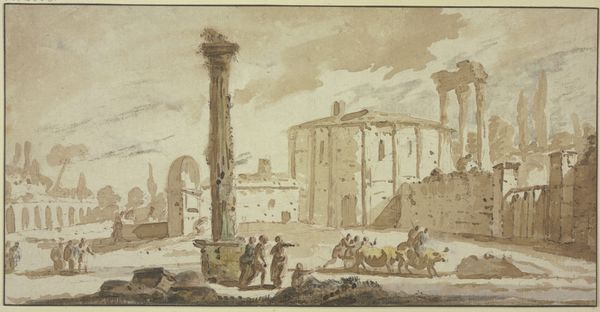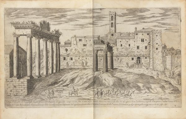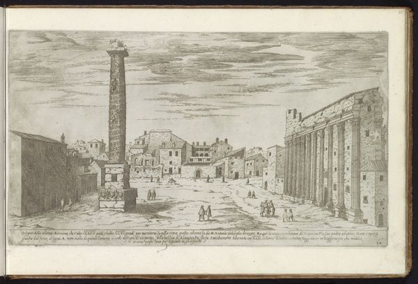 Aegidius Sadeler II created this print, titled "Plate 31: view of the column of Trajan," as part of a series called 'Ruins of the antiquity of Rome, Tivoli, Pozzuoli, and other places'. It captures a moment in the early modern period where the weight of classical history began to be unearthed, literally and figuratively. The print depicts Trajan's Column, a monument erected in ancient Rome to commemorate Emperor Trajan's victory in the Dacian Wars. Sadeler's image draws us into a world where the past is being rediscovered. The column's base, partially excavated, hints at a sense of uncovering and reinterpreting history. Consider that Sadeler, living in the 16th and 17th centuries, was part of a generation grappling with the legacy of the Roman Empire, seeking to reconcile it with contemporary life. This image is not just a depiction of a ruin; it's a reflection on how societies engage with their past and how these ancient structures continue to shape our present.