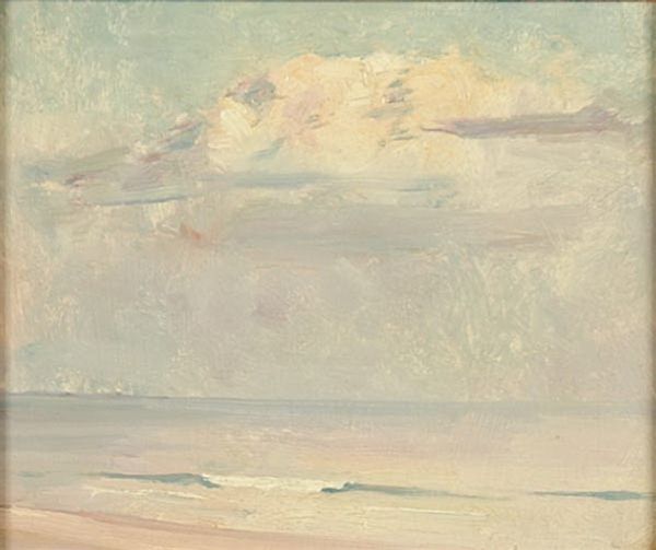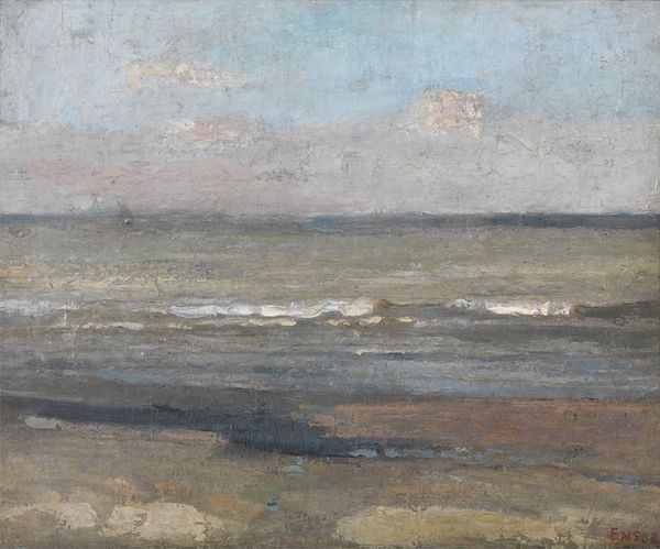 Jules Bastien-Lepage captured this view in 'Snow Effect, Damvillers' using oil on canvas. At first glance, the muted palette of whites, blues, and grays evokes a quiet, somber mood. The composition is strikingly simple: a vast expanse of snow-covered ground dominates the lower half, meeting a sky filled with soft, diffused light. Bastien-Lepage's brushwork is loose and textural. Notice how the subtle variations in tone and the visible strokes suggest depth and form, particularly in the snow-covered landscape. The artist seems less concerned with precise representation and more interested in capturing the atmospheric effects of light on the snow, creating an almost abstract study of color and texture. What makes this painting compelling is its ability to convey a sense of place and mood through purely formal means. The subdued palette and loose brushwork invite us to contemplate the essence of a winter landscape, reducing it to its most fundamental elements of light, color, and form.
