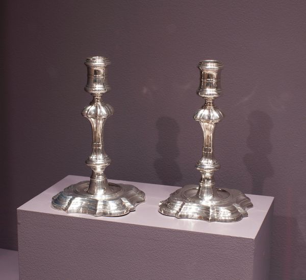 Curator: Let’s consider this Porringer, crafted by John Burt around 1725 to 1730. It is comprised of metal, or rather, silver, now residing at the Minneapolis Institute of Art. What are your initial observations? Editor: It’s remarkable how the silversmith could transform metal into an object with an inviting shape and those ornate handles, which look delicate but also provide function. But seeing two of these side by side really emphasizes their form. How might we approach an interpretation of these pieces from an artistic perspective? Curator: Note how the primary forms – the bowls – are defined by a simple, almost perfect circle, while the handles disrupt this symmetry with their intricate, projecting designs. Think about the formal tension created. Do you observe how light plays on the hammered surfaces, subtly animating the metal? This contrast between the regular curves and the irregular faceting, along with the balance of reflective light and shadowed space, provides an intricate, satisfying aesthetic. Consider the shapes created, too. Editor: So it's about looking at how shape, light, and the deliberate alteration of the surface give the bowl its visual appeal. So, is the value residing in those compositional elements of curve, light and shape alone? Curator: Precisely. We see the artist's deliberate choices manifested in the finished object; an almost paradoxical merging of practical utility with visual intrigue and balance. This isn’t only about holding liquid, but about how such a thing looks. Editor: This approach really shifts my perspective. Curator: Mine as well. Seeing you examine it from a functional angle reminded me to see the visual from another viewpoint. Thank you!