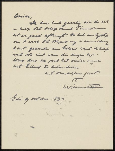 This is a letter, "Brief aan Jan Veth," written in 1905 by Willem Witsen. It's just ink on paper, but it's so much more than that. I love that writing is really just drawing, isn't it? A long and elegant squiggle, a looping dance. Look at the way Witsen's pen just glides across the page, these dark and rhythmic marks creating a field of thought, emotion, and who knows what else. It's like each word is a little gesture, a little performance. Notice the way the lines sometimes thicken and blur, as though the pen lingered there, or perhaps the ink was running out. Art is like a conversation, a kind of call and response. Witsen's work reminds me of Cy Twombly's, actually - that same sense of playful energy, of letting the hand lead the way. Art is never really finished, you know? It just keeps going, changing, and surprising us, like a good story that never ends.