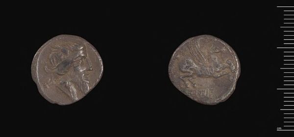 Editor: This is a Tetradrachm of Antiochos VI Dionysos of Syria. Seeing the material—likely silver—along with the imagery, I'm curious about the process of minting coins back then. What can this piece tell us about its creation and context? Curator: Well, consider the labor involved. Mining the silver, the skills of the die engraver, and the societal need for currency. These coins weren't just pretty pictures; they facilitated trade and power. What does the imagery suggest about royal power and economic control? Editor: I see the ruler's portrait, of course, and the inscription… so, it’s less about artistic expression and more about function and power dynamics? Curator: Precisely! The coin is an artifact of material exchange and political messaging. The very act of creating and distributing these coins solidified Antiochos's rule. It’s fascinating how a small object reflects so much. Editor: I never thought about a coin carrying that much weight! I’ll definitely look at currency differently now. Curator: It's a tangible link to a society's economic and political structure.