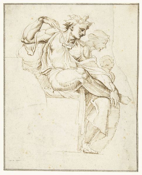 Editor: Here we have William Sharp’s "Evil," an engraving housed here at the Harvard Art Museums. The expression is so raw, so visceral! What historical context shapes your understanding of this piece? Curator: Sharp lived during a time of great social and political upheaval. The late 18th century saw revolutions, the rise of Romanticism, and an increasing fascination with extreme emotions. How do you think this artistic and social climate informed Sharp's depiction of "Evil"? Editor: I guess it provided a space to explore powerful themes like rage and despair. Do you see any of that in the work itself? Curator: Absolutely. Notice the figure’s contorted face, wild hair, and the swirling drapery around him. It's like he's embodying the very chaos of the era. The print's dissemination would have made this accessible to a wide audience, wouldn’t you agree? Editor: That makes sense. I never really thought about how accessible prints were, and the effect that could have! Curator: Exactly, thinking about that really opens it up.