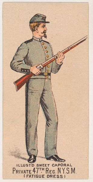 This chromolithograph was made by the Kinney Brothers Tobacco Company to promote Sweet Caporal Cigarettes. Here, a soldier stands at attention, rifle in hand, clad in the uniform of the 71st Regiment of the New York State Militia. Note the star emblazoned on his helmet. This symbol, deeply rooted in human history, transcends mere military affiliation. Think of the ancient goddess Ishtar, her eight-pointed star a beacon of power and divinity, or the star of Bethlehem, guiding the magi. The star evokes notions of destiny, guidance, and higher purpose. Consider, too, how the image of the soldier, upright and stoic, taps into a collective memory of martial virtue. From the bronze statues of Roman legionaries to Renaissance depictions of noble knights, the armed figure has long served as a potent symbol of courage, sacrifice, and the defense of communal values. Such imagery, recurring across cultures and eras, reminds us of the enduring human fascination with power, protection, and the psychological comfort found in symbols of strength.