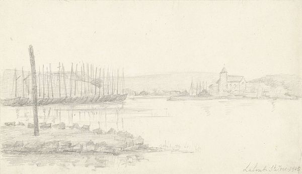 Editor: So, here we have "Gezicht op de gebouwen van de roeivereniging de Hoop" - a view of the 'de Hoop' rowing club buildings - created sometime between 1847 and 1884, attributed to Johan Conrad Greive. It's a print, an etching on paper. There's something serene and quiet about it...almost dreamlike. What catches your eye in this work? Curator: It’s fascinating to see etching used to depict such a scene. Think about the labor involved – the meticulous process of incising the image into the metal plate. What materials were available, who had access to them, and how did the economics of printmaking influence what could be produced and distributed? Editor: I see your point, how access to resources influenced the piece. What about the subject matter, this rowing club. Did the social context influence it, and if so, how? Curator: Absolutely. Rowing clubs like 'de Hoop' emerged in the 19th century, reflecting the rise of leisure culture among a specific segment of the bourgeoisie. The materials used to build those structures—the timber, the iron—tell a story of trade and industry, connecting this tranquil scene to the broader material realities of the time. It's not just a pretty picture; it's a snapshot of a particular class engaging in newly available forms of recreation made possible by specific materials. Editor: So, the choice of materials for both the art and what's being represented reflects societal shifts? Curator: Precisely. Even the act of creating and distributing prints allows art to enter the realm of mass consumption. Editor: That gives me a fresh perspective. It is far more than just a drawing of a riverside scene. Curator: Exactly. Focusing on the materials and production gives us invaluable insight. Editor: I'll definitely be looking at art with new eyes from now on.
