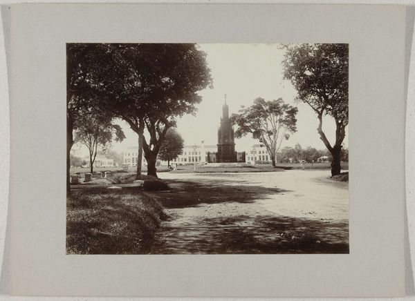 Editor: This albumen print, "Laan met gracht te Batavia" created by Woodbury & Page between 1857 and 1880, portrays a tranquil canalside scene. The stillness of the water and the orderly composition create a peaceful mood, but the high contrast and visible emulsion layers hint at its age and the process behind its creation. What do you see in this piece? Curator: This photograph gives us insight into the materiality of colonial representation. Look closely at the albumen print itself – the layering, the chemical processes. Photography, originally a Western technology and industry, became a tool used to document and classify colonized spaces. How did its production influence the consumption of these images back in Europe? Editor: That's an interesting point. So the *process* of creating this image, the "how," is more important than just *what* is depicted? Curator: Exactly. Consider the labor involved, the chemical resources, the infrastructure required to produce this image in Batavia and then disseminate it. It's not just a pretty picture of a canal; it’s a product of a complex colonial economic system. Were local populations included in its making? Whose stories get told? Editor: So it is more like looking at how the image reinforces the values that the photographer had? Also, how it might influence the views and knowledge back home? Curator: Precisely! Think about how photography, through the physical object, and distribution networks, shaped the consumption and perception of Batavia in Europe. Who was the image made *for*, and what narratives about Batavia did it help to build and sustain through these prints, impacting local culture and resources? Editor: It definitely shifts my perspective. I was focused on the visual beauty, but I understand it represents more complex structures. Thank you! Curator: Indeed. Examining the image through the lens of its materiality reveals the intricate ties between artistic expression and economic realities. It can inform a more critical approach to images like this in the future!