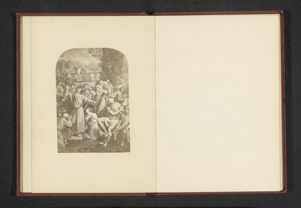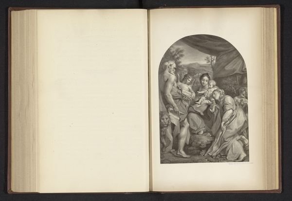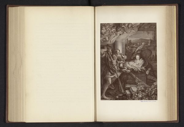 Curator: Here we have a photographic reproduction of an engraving dating to before 1871. The print depicts the Adoration of the Shepherds, after a painting by an anonymous artist. Editor: My first thought? The textures look fascinating even through the reproduction, and the overall feeling is one of intimate reverence. It seems to invite the viewer into the scene rather than observing from afar. Curator: Absolutely. These kinds of reproductive prints were critical in disseminating imagery to a wider audience. It allowed access to masterpieces even without physically visiting a gallery. The narrative becomes more widely available, shaping public understanding of religious and historical scenes. Editor: I’m especially interested in the translation from paint to engraving. You lose some of the color and tonal subtleties, sure, but you gain this incredible line work. It makes me wonder about the labor involved. The engraver is mediating the painter’s vision and introducing their own craft into the mix, almost like a collaborative venture separated by time and space. Curator: Indeed. The layers of mediation are significant. And who consumed these images? Were they accessible to a broad segment of society or primarily those within particular social strata, reinforcing existing hierarchies even through ostensibly ‘religious’ images? Editor: That's an excellent point. It is likely destined for bourgeois consumption within an intimate setting like a family bible or private collection where printed imagery provided an affordable and morally upright subject for home decor. I think such reproductions gave the bourgeoisie another vehicle for claiming status. Curator: Which speaks to how the market influenced what and how artists created, then. Consider also, the print’s existence underscores the public role art plays in shaping religious and cultural norms. Editor: Right. This exploration reveals a network connecting religious representation, artisanal work, economic circulation, and audience formation. The journey of this image and its subsequent copies makes its art historical value even greater in our view.