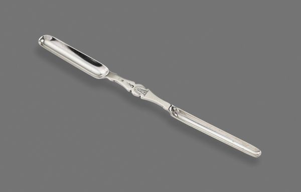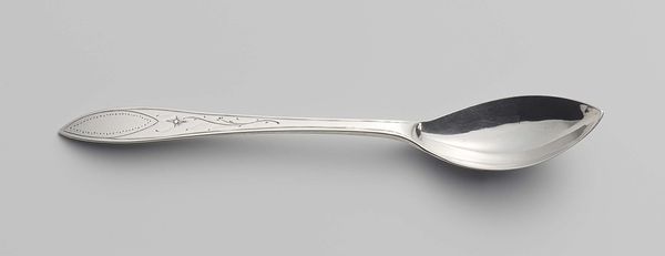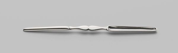 This elegant fork was crafted in the Netherlands by Johannis Nys in 1722. It is part of a set that includes a knife, both made of silver, and speaks volumes about social status and the rituals of dining in the Dutch Golden Age. In 18th-century Netherlands, owning silverware was a clear indicator of wealth and social standing. Notice the engraved initials ‘VR SE’ along with the date. These marks tell us about the original owner, their identity and family history. Forks were relatively new to the table at this time and their adoption signaled a move towards more refined dining practices among the elite. Silver, as a material, was not merely functional; it reflected the owner's taste, sophistication, and place within a hierarchical society. Understanding this fork involves delving into Dutch trade networks, the silver trade, and the socio-economic structures of the time. Such research helps us interpret the silent language of objects, revealing their embedded social meanings.