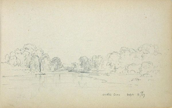 Editor: This is Benjamin Champney's "Landscape with Trees, North Conway, New Hampshire," a small pencil sketch. It feels so light and airy. What strikes you most about its composition? Curator: The immediacy of the mark-making is quite compelling. Notice how Champney uses line to delineate form, barely suggesting depth or volume. What semiotic potential do you see in this simplicity? Editor: I guess it's about capturing the essence of the scene rather than a detailed depiction. It makes it feel more universal, maybe? Curator: Precisely. The sparseness allows the viewer to project their own understanding of landscape onto the work. An interesting study in form and reduction, wouldn't you agree? Editor: Absolutely, I see how that simplicity creates space for individual interpretation. Curator: Indeed. It underscores the potency of minimalism in communicating profound aesthetic experiences.