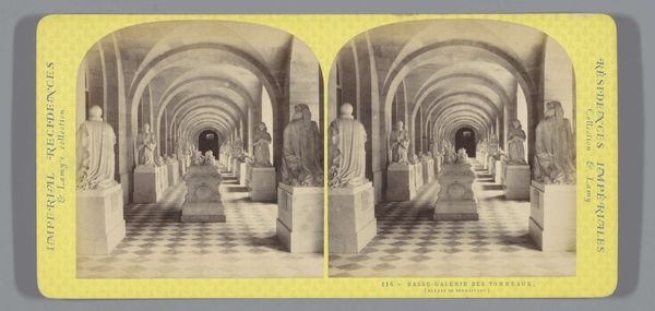 This stereoscopic photograph by Ernest Eléonor Pierre Lamy shows the sculpture gallery in the Palace of Versailles. It offers a glimpse into the cultural and political landscape of 19th-century France. Lamy presents a seemingly endless parade of busts in a corridor, meant to awe the viewer with the scope of French imperial power. This carefully constructed image speaks to the enduring influence of the monarchy, even as France navigated shifting political tides. The choice of Versailles, once the epicenter of royal authority, adds another layer of historical context. To fully appreciate Lamy's photograph, we need to consider how art institutions like Versailles shape our understanding of history and power. Detailed archival research into the Palace's holdings and visitor logs can help us understand the intended message of this image and its reception by different audiences. Ultimately, this photograph reminds us that art is always contingent on social and institutional context.