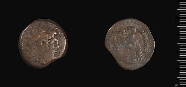 Curator: This artifact is a sestertius, a Roman coin, depicting Commodus. Even on this tiny surface, his image looms large. Editor: It feels weighty, doesn’t it? I mean, metaphorically. The heft of empire, pressed into this bronze disc. Curator: Indeed. Coins like these served as a propaganda tool, shaping public perception of the emperor. Each symbol carefully chosen. Editor: So, what statements were they making? I can make out two figures on the reverse. Curator: The figures depict a sacrifice scene, possibly emphasizing Commodus's role in upholding religious traditions and maintaining the pax deorum, the peace of the gods. Editor: Interesting how even the smallest objects can speak volumes about the politics of their time. Curator: Absolutely. They are echoes of power, resonating across millennia. Editor: Yes, an echo that reveals the ongoing interplay between leadership, legacy, and iconography.