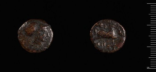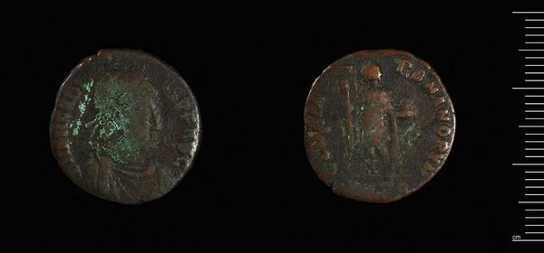 Editor: This is a Decanummium of Justinian from Constantinople. Considering its age and material, the details are fascinating. What can you tell me about the social or material context of this coin? Curator: Consider the bronze alloy: its sourcing, trade routes, and the labor involved in its extraction and processing. These details reveal the interconnected networks sustaining Byzantine power. How does this mass-produced object reflect power dynamics? Editor: I hadn't considered the mining or the trade of raw materials. So, the coin isn't just currency; it's a record of resource extraction and the empire's ability to control these materials? Curator: Precisely. And consider the die-making process. Each strike bears the imprint of skilled labor, but also standardized imperial messaging. How does that contrast with handcrafted art objects? Editor: It highlights the scale and control that the empire had. Seeing it this way makes me appreciate the layers of production embedded in this coin. Curator: Indeed. This coin embodies the intersection of imperial power, material resources, and human labor, revealing a complex web of social and economic relations.
