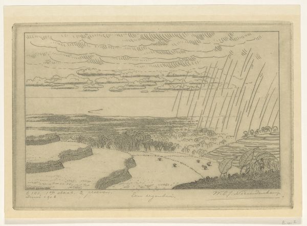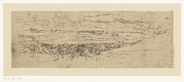 Hercules Segers created this unusually toned landscape with etching sometime before 1638. The composition is striking; a high vantage point looks out over an extensive, panoramic view, where delicate etched lines detail the topography of the land, creating a sense of depth and distance. Segers’s landscapes defy conventional interpretation because of their formal construction. Segers inverts traditional notions of landscape. He uses stark tonal contrasts to create a sense of estrangement and defamiliarization. The composition resists a clear hierarchy, challenging the viewer’s spatial and perceptual orientation. The sinuous road leads the eye into the distance, whilst the dark branches form a curtain that disrupt our view. Segers's landscapes are best understood not merely as representations of nature, but as complex arrangements of form and structure. It destabilizes established meanings and engages with new ways of thinking about space and perception.