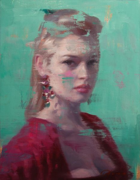 Vincent Xeus made 'Boheme' with oil on canvas at an unknown date. This artist really leans into the juicy, physical stuff of paint! Look at how those brushstrokes drag horizontally, almost like they’re blurring the image. There’s a tension between wanting to define the figure and letting the paint just *be*. It’s like the image is fighting to stay put. I love the way he uses color. The pinks in her cheeks against that cool, minty background? Delicious! And see how the red in her scarf kind of bleeds into the rest of the painting? It’s not about neat lines, but more about feeling. A similar feeling can be found in the work of Marlene Dumas where the image seems to dissolve into the paint. The whole thing feels very alive, like a fleeting moment captured. It’s a reminder that painting isn’t about perfection, it’s about the process.