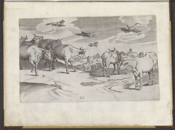 Editor: This is "Mountain Landscape and a Landscape with Deer," a pencil drawing by Johannes Tavenraat from 1840. It's currently held at the Rijksmuseum. I find the drawing quite dreamlike, almost like a fleeting memory. What do you see in this piece? Curator: Well, immediately, I notice the curious depiction of the deer – or reindeer, perhaps – presented almost suspended or floating in the upper portion of the drawing. In many Northern European traditions, the deer has rich symbolic meaning tied to wilderness, the cycle of nature, and even spiritual guidance. Notice how the landscape itself is lightly sketched, almost ethereal. Editor: So, the deer isn’t just another animal; it's charged with meaning? Curator: Exactly. Tavenraat uses the deer as a visual shorthand. He's tapping into a wellspring of cultural understanding, inviting the viewer to project their own experiences of nature, memory, and the wild onto the scene. What kind of emotions does this image evoke? Editor: A sense of peace, but also of something slightly untamed, like the landscape is both beautiful and formidable. It's a very Dutch romanticism, almost melancholy. Curator: Precisely! Think about the broader context. 1840… Romanticism was in full swing, idealizing nature as a powerful, sublime force. It also connects to older iconographies of hunting scenes, yet divorced from human drama. This image seems concerned more with the landscape as an inner space, mirroring a state of mind. What did you learn by comparing this image to its historic era? Editor: That by delving into symbolism, the landscape tradition can reveal deeper emotions. The personal is intimately connected to how landscape and animals were visually represented. Curator: Agreed, by recognizing key visual elements, like animals in the image and style conventions of that era, the artwork speaks with greater cultural resonance.