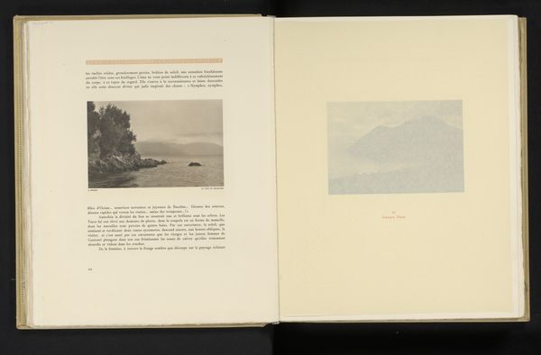 This is "Gezicht op het meer van Stymphalos," or "View of Lake Stymphalos," made by Frédéric Boissonnas, though when exactly, I'm not sure. But look at the way the image seems to shimmer! The texture, especially in the water, is almost like a fine fabric. You can imagine Boissonnas, methodically layering thin washes of color, building up this incredible sense of depth and atmosphere. It's not about bold gestures; it's more about a quiet, repetitive process, a kind of meditation on the landscape. That little island in the middle of the lake? It’s just a light area surrounded by darker shades but there’s something about the delicacy of the touch that makes it feel so present. I’m reminded of Corot or even some of the early Impressionists, in how they captured light and fleeting moments. It feels like a moment caught in time, but also timeless. You can get lost in that lake, no problem!