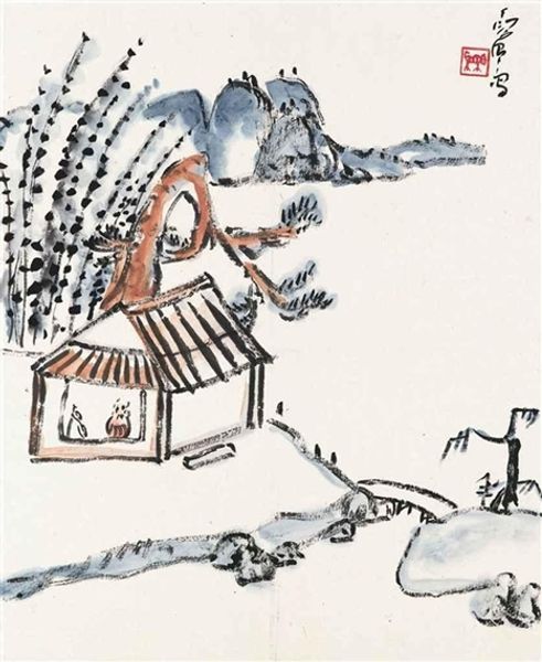 Editor: So, here we have Ding Yanyong’s “My Residence,” created in 1977 using ink and watercolor. The landscape is rather abstract, and the buildings are presented in geometric forms. What strikes me most is its simplicity and dreamlike quality. What do you make of it? Curator: It’s interesting how Ding Yanyong, especially after moving from mainland China to Hong Kong, retained this very classical style, almost stubbornly so. Remember the cultural climate of the 1970s; much of the art world was exploding with new media and radical approaches. This clinging to tradition can be seen as a political act, a quiet resistance to imposed aesthetic values, don’t you think? How does that historical context affect your viewing? Editor: That's a really interesting point about cultural resistance through tradition. I was so focused on the immediate aesthetic, I hadn’t considered that layer. So, are you saying the choice of traditional materials itself became a statement? Curator: Exactly. Think about what watercolor and ink represented—deep roots in Chinese art history. To continue working within that framework, despite external pressures, positioned Ding within a specific cultural lineage. The choice wasn't merely artistic; it was an assertion of identity and cultural continuity in a changing world. Editor: I guess I was taking that link for granted, just seeing it as ‘Asian Art’ tagged on the description. Now, it's far more nuanced. The quietness I initially perceived is louder than I realized. Thanks! Curator: Absolutely! Always question the quietness; sometimes, that's where the loudest statements reside. It is all about questioning why certain forms endure while others fade. Food for thought.