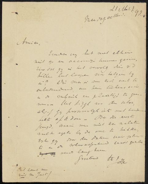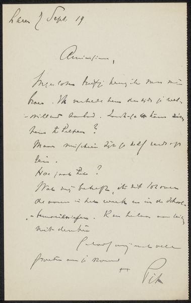 This letter, written by Isaac Israels in Brussels, is a beautiful example of how handwriting can be art. Look at the ink; it’s not just black, but has a range of tones, from almost grey to solid black. This is artmaking in its most intimate form. The letters themselves are alive, like little figures dancing on the page. See how the ink pools in certain spots, creating tiny, unexpected shadows? That’s where the pen lingered, where the thought was perhaps more intense, more considered. It’s like a tiny abstract painting within each word. The flow of the script suggests a real urgency, as if he were driven to set down his thoughts on paper. It reminds me a little of Cy Twombly’s scribbled paintings, where writing becomes drawing, and meaning is suggested as much as it’s stated. With both artists, ambiguity is embraced. We don't need to know exactly what they're saying to feel the emotion.