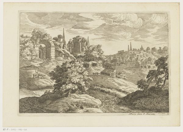 Dominique Barrière etched this landscape, a small window into 17th-century life. Observe the prominent castle on the hill—a classic symbol of power, security, and perhaps isolation. The castle evokes images of medieval fortresses, yet here, it appears almost softened, domesticated. Recall similar structures in illuminated manuscripts or tapestries, where castles signified not just dominion but also romance and chivalry. But consider this: even as the castle stands for strength, it also suggests vulnerability. Its placement on a high point makes it visible, exposed. This echoes the psychological tension between wanting to protect and feeling threatened, a duality that plays out across history, from ancient city walls to modern gated communities. The collective memory of sieges, betrayals, and fallen strongholds lingers, influencing how we subconsciously interpret this image, a potent reminder of our ever-present fears and desires. Thus, the castle endures, its form evolving, its symbolic weight shifting, yet always reminding us of the enduring human quest for safety and control in an unpredictable world.