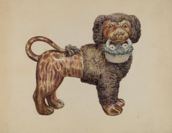 This is "Ace of Clubs, A Nace Dawg," a lithograph card from the Harlequin Cards series, produced by the Kinney Brothers Tobacco Company. Cards like this were churned out en masse, with the color lithography process using a division of labor which was typical of industrial capitalism: while an artist might have designed the image, many hands would have been involved in the physical production. The relatively quick process allowed companies to cheaply print vibrant images with commercial appeal, creating collectible cards to include in products like cigarettes, therefore encouraging repeat purchases. The dog itself is humorously rendered, with the suit of clubs used as a nose. Its spiked collar and chain link it to both the symbols of wealth and to images of subjugation. These little cards give us a glimpse into the intersection of labor, advertising, and popular culture in the late 19th century. By looking closely at the materials and modes of production, we see how even the humblest objects can reflect broader social dynamics.