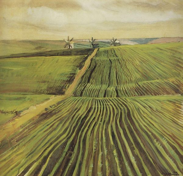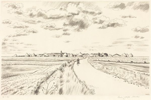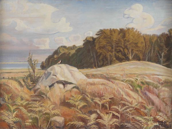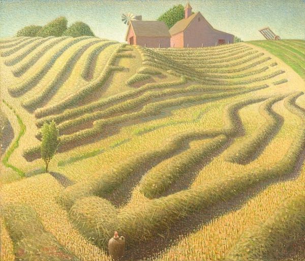 This print, Early Harvest, was made by Bruce Mitchell sometime in the mid-twentieth century. Look at those colors – a beautiful, restrained palette of muted blues, yellows, and greens. It's like Mitchell is whispering secrets of the earth and sky. There’s a real sense of process here, isn’t there? You can almost feel the artist's hand moving across the paper. The way he's layered the colors, it's not about perfection but about capturing a moment, a feeling. The wheat field is evoked with these light gestures, the tractor is almost childlike in its rendering. The gentle textures remind me of Milton Avery, who had this knack for simplifying forms and using color to create these really evocative, atmospheric scenes. But Mitchell has his own thing going on, a quiet humbleness that makes you feel like you're right there, breathing in the fresh air of the harvest. Art like this reminds me that beauty isn't always about the grand gesture. Sometimes, it's found in the simple act of paying attention.