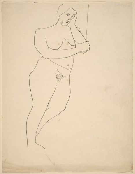 Mark Rothko, better known for his abstract paintings, made this drawing, "Seated Nude, Three-quarter View, Turned to the Right" using graphite on paper. Rothko rendered the nude figure with a sparse and economic line, a traditional subject explored through the medium of drawing, a practice strongly embedded in the history of fine art. The inherent qualities of graphite lend themselves to the creation of this image, from the smooth application creating the contours of the body, to the subtlety of shadow play. Rothko’s technique is reduced to its simplest expression; the bare minimum to convey a representational image. The work itself invites us to think about the process of drawing as an intimate engagement; a meeting point between the artist’s eye, hand, and the subject matter. It’s through this engagement, through the immediacy of his line that the artist invites us to consider the weight and significance of traditional art materials and practices.