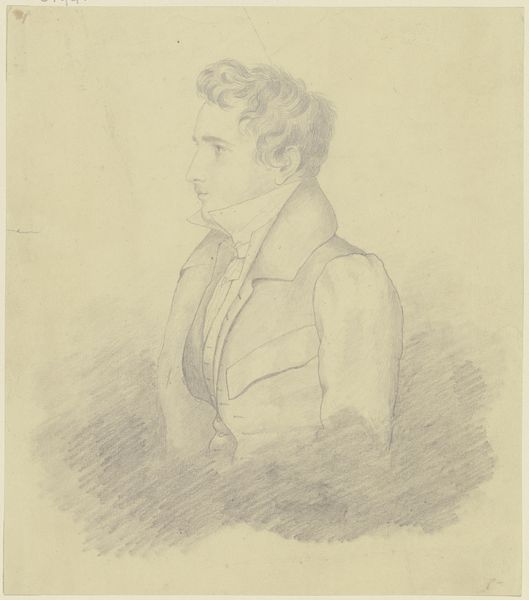 Editor: This intriguing sketch, simply attributed to the British School, presents a man in profile, drawn with delicate graphite lines. It has a certain directness and honesty to it. How do you interpret the artist's focus here? Curator: Well, it feels like a fleeting moment captured, doesn't it? See how the lines are confident yet searching, revealing the artist's exploration of form. I'm drawn to the gaze; it speaks of contemplation, perhaps even a touch of melancholy. Maybe this wasn't just a portrait, but a glimpse into a soul? Editor: I hadn't considered that! It’s amazing how much emotion can be conveyed with so few lines. Curator: Exactly! It reminds us that art isn't always about grand statements, but about the quiet, intimate observations that resonate within us.